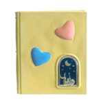 Album bimbo in tessuto blu con placca disegnata in argento bilaminato 925.