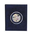 Album in vellutino giallo ocra con piastrina in argento bilaminato 925 con angioletto in rilievo, cielo stellato colorato lucido.