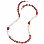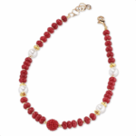 Bracciale finitura oro con giada rubelite, perla di maiorca e more rosse