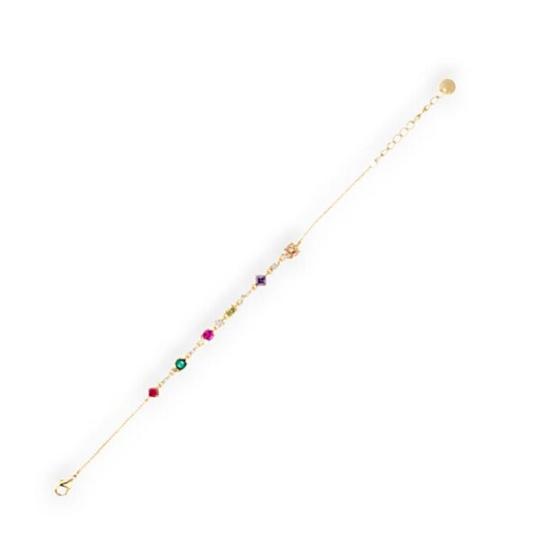 Bracciale in ottone, finitura oro 18 kt con cubic zirconia multicolor. 16+4 cm.