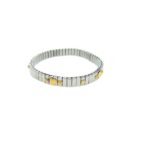 Bracciale metallo elasticizzato con riporti oro (pallini e stella) alternati.