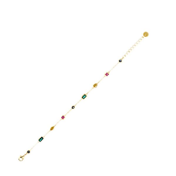Bracciale in ottone, finitura oro 18 kt con cubic zirconia multicolor. 16+4 cm.