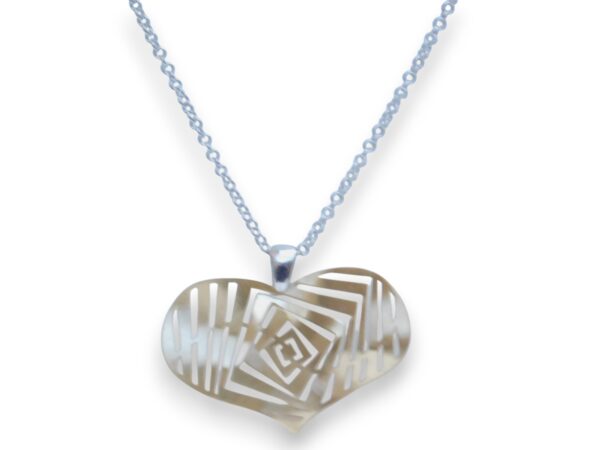 Collana in argento con ciondolo a forma di cuore filigranato e ondulato.
