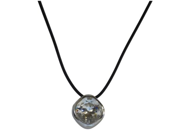 Collana con cordoncino in caucciù e ciondolo con pietra argento.