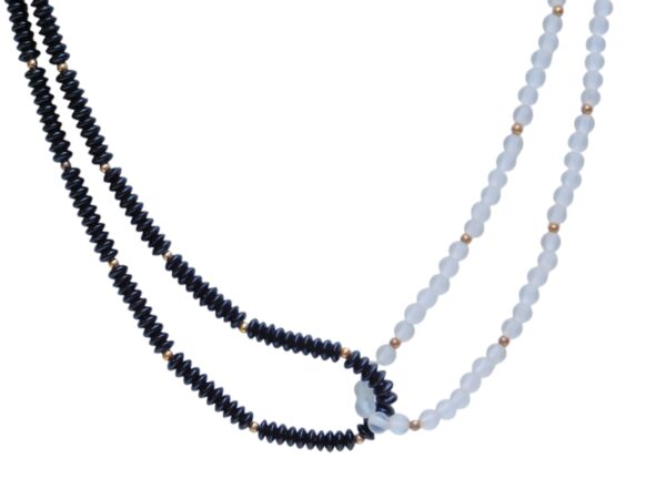 Collana con pietre bianche e nere con riporti in oro.