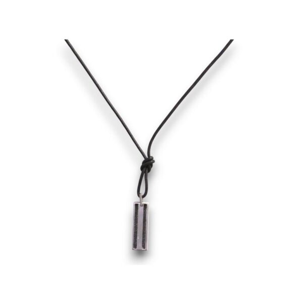 Collana cuoio con ciondolo rettangolare argento.