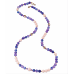 - Collana finitura oro con giada rubelite, perla di maiorca e more rosse