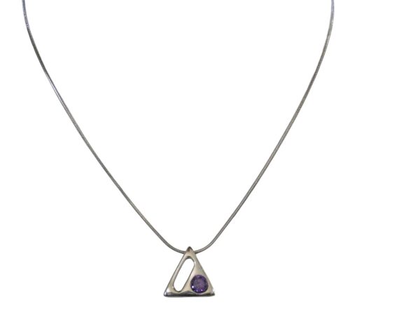 Collana in argento con ciondolo triangolare argento e zircone viola.