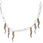 Collana in cuoio con ciondolo in argento a forma di goccia.