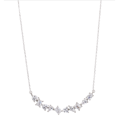 Collana in ottone, finitura rodio con cubic zirconia. 40+5 cm.