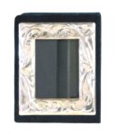 Cornice quadrata in argento massiccio 925 liscia con quadrati di smalto blu.