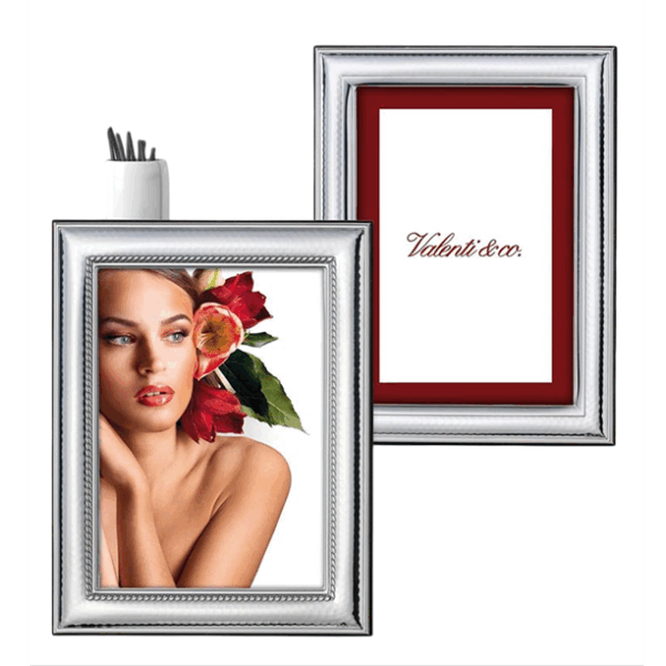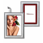 Cornice lucida e satinata in argento bilaminato, retro in legno marrone