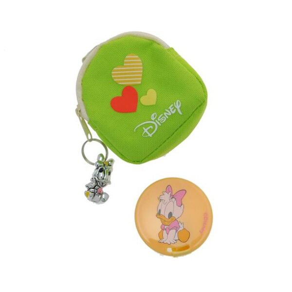 Mini zainetto in stoffa Disney con disegnati 3 cuoricini e scritta disney.
