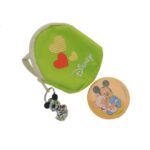 Mini zainetto in stoffa Disney con disegnati 3 cuoricini e scritta disney.