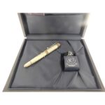 Penna Aurora edizione limitata “Papa Giovanni Paolo II”. Penna stilografica con cappuccio dorato impreziosito con i simboli papali e agata bianca, il corpo è in resina screziata color marmo. Il pennino è in oro massiccio 18kt. Realizzata in 1919 esemplari numerati (n. 767/1919)