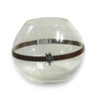 Portacandele in cristallo con piccoli cristalli di luce sul fondo.