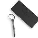 Cofanetto con portacarte di credito in ecopelle nero e penna color argento ad inchiostro nero della ditta Pierre Cardin.
