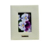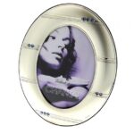 Portafoto con doppia fascia in pelle con stampa bianca e beige della ditta “U.S. Polo Assn since 1890” lastra in argento centrale targata Polo.