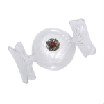 Ampollina portaprofumo in vetro ultra leggero con placca centrale in argento bilaminato 925 con pietra rossa o blu.