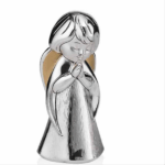 Scatolina portarosario (finto libro) in similpelle con placca in PVD e laminato argento sul davanti con due angeli in rilievo che pregano.