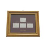 Quadretto in legno color oro, con 5 inserti francobolli in oro basso “Italia in oro”.
