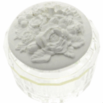Scatolina di ceramica con croce in metallo argentato e strass, D.7 H.3,5