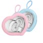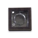 Confezione in platica rigida color argento con placca rettangolare centrale in argento bilaminato 925 .