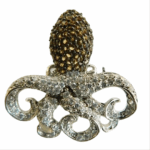 Spilla in argento 925 soggetto cavalluccio marino con zirconi ambra e bianchi