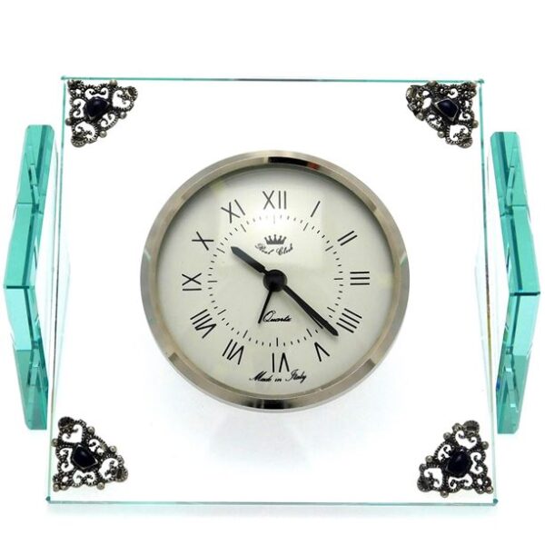 Sveglia in cristallo con placche decoro in argento 925